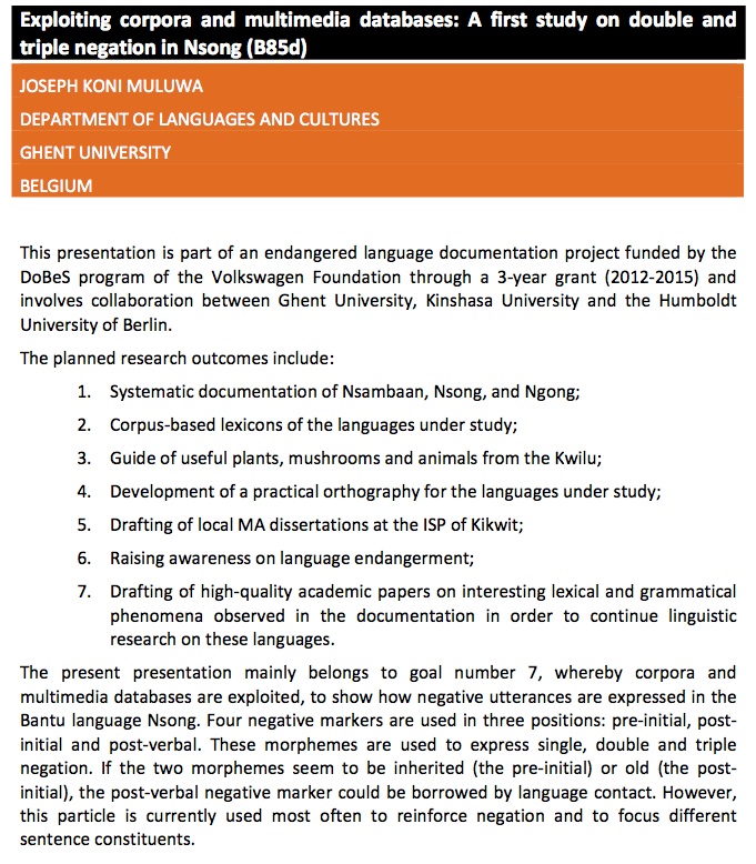Exploiting corpora and multimedia databases: A first study on double and triple negation in Nsong (B85d) - Joseph Koni Muluwa